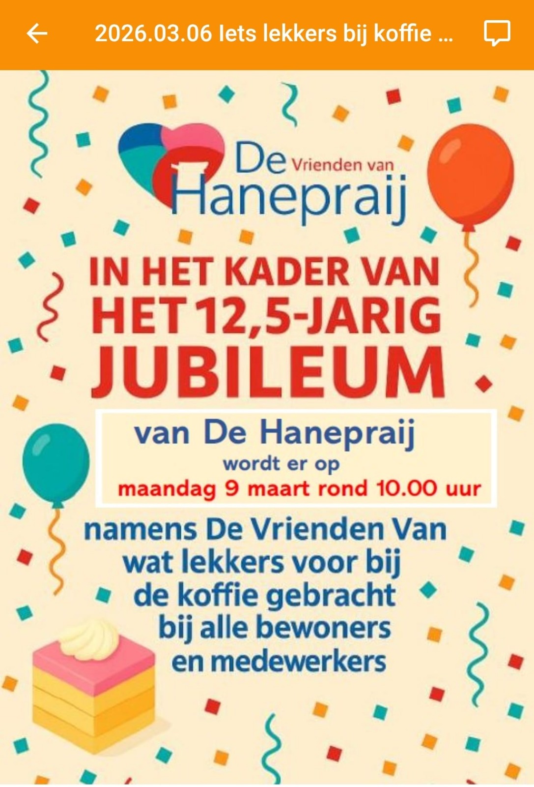 In het kader van het 12,5 jarig jubileum van Vrienden van … krijgen alle bewoners wat lekkers!